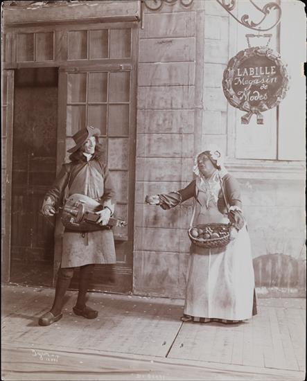 Either two costumed players demonstrating the use of personal props, or a scene from David Belasco's production of his play "Du Barry" featuring Mrs. Leslie Carter in the title role, presented at the Belasco Theatre, Broadway and 42nd Street, New York in 1902.