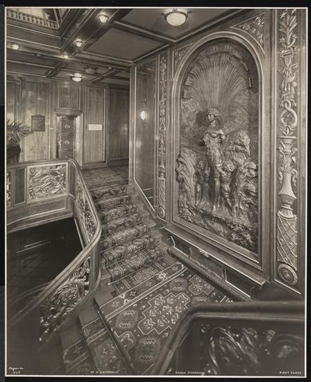 French Line, M.S. "Lafayette" Third Class-Forward, Interior, Main Staircase.