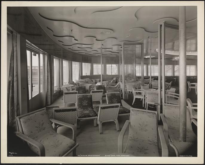 S.S. "Nieuw Amsterdam", Cabin Class, Interior, Smoking Room from Veranda.