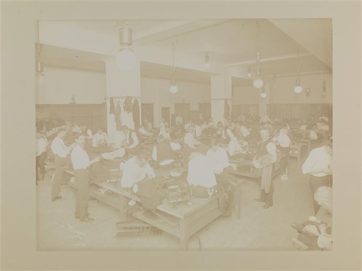 Large room filled with workers making clothing.