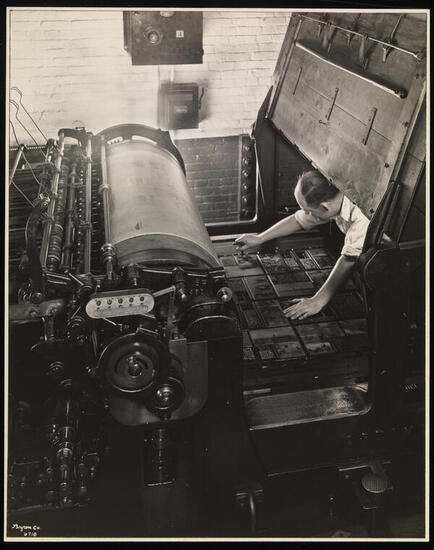 Unz & Co., Printers and Stationers, Second Floor, Man Adjusting Form in Press.