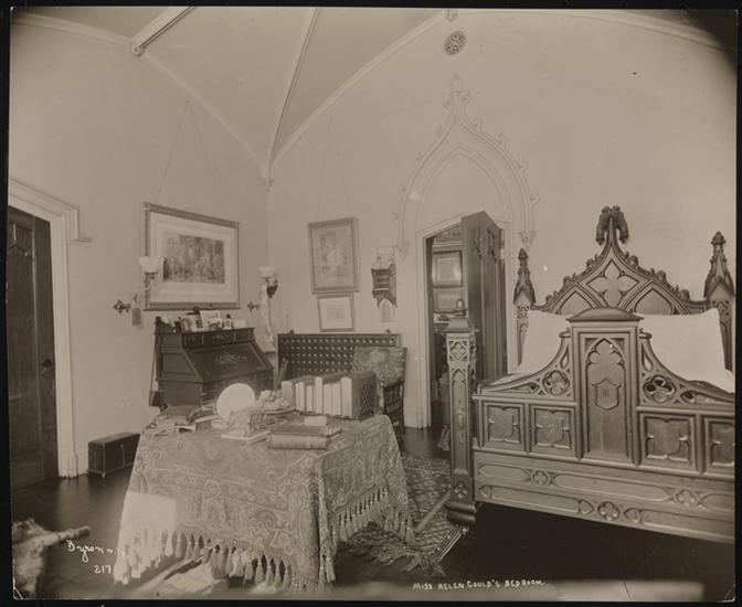 Photographer's stamp on verso, including credit line and permission to publish. | "Miss Helen Gould's Bedroom" on neg.