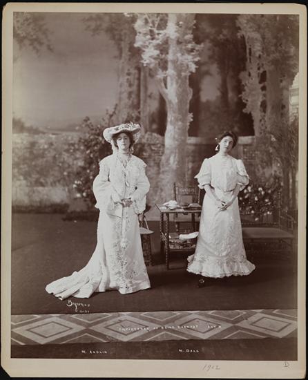 Margaret Anglin as Gwendolen Fairfax and Margaret Dale as Cecily Carew in a revival of Oscar Wilde's "The Importance of Being Earnest," presented by Charles Frohman.