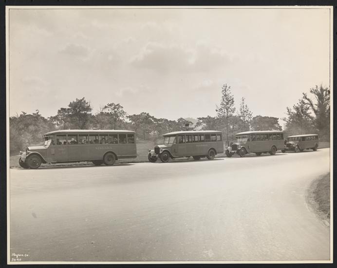 Motorway Tours Co., Exterior, four busses in Central Park.