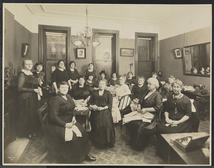 Interior, Group, Women's Sewing Circle at 2307 B'way Between 83 & 84 Sts.