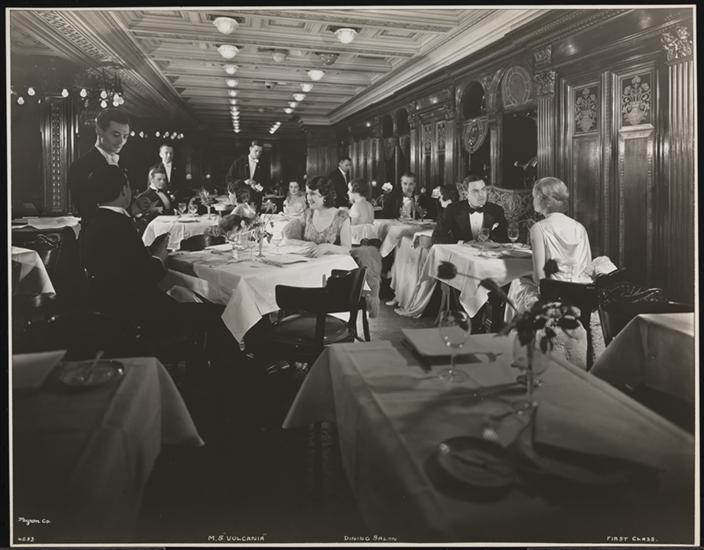 M.S. "Vulcania" First Class with Models, Dining Salon.