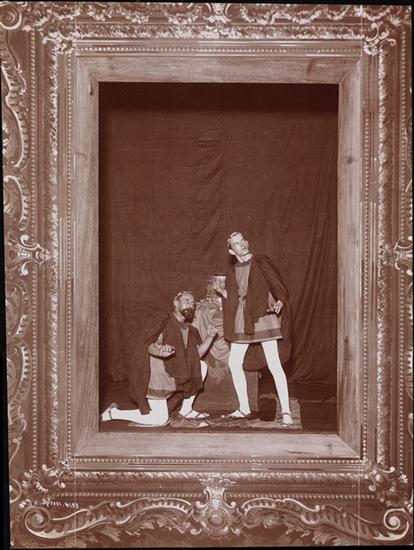 A "Living Picture:" models in costumes reminicient of ancient Greece, posing within a frame.