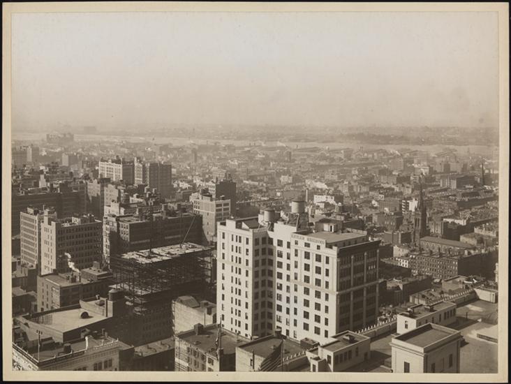 From a midtown rooftop looking southwest over Manhattan toward the Hudson River.