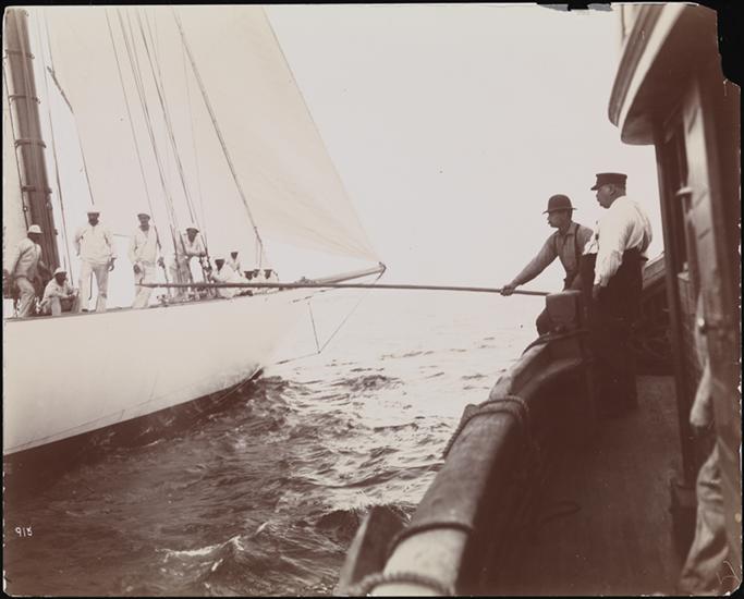 Numbered on neg. | "Receiving sailing orders" in pencil on verso.