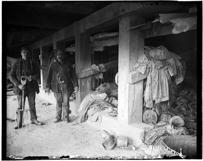 [Seated boys under dump.]