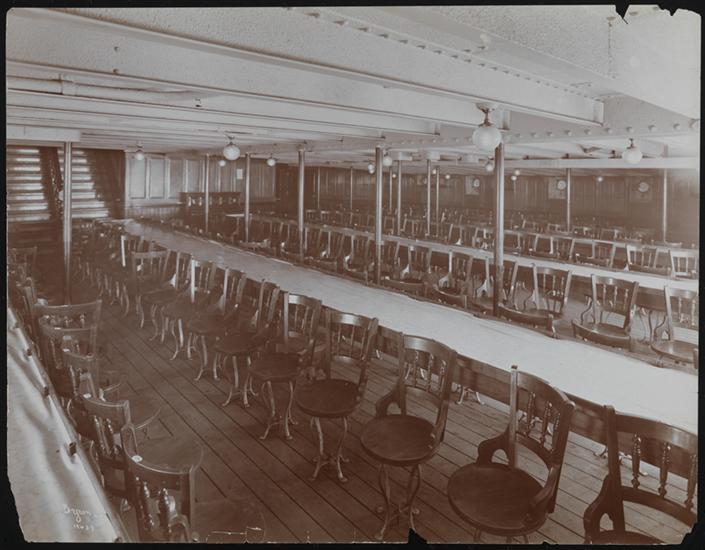 The third class dining room on the S.S. "Caronia".