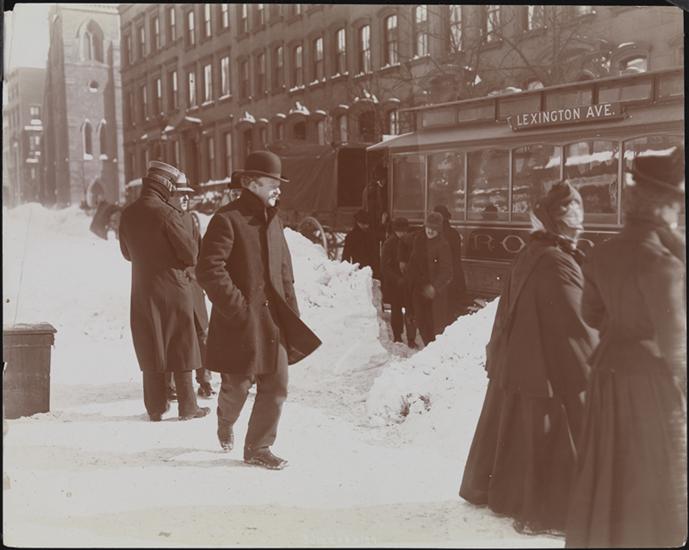 Snow Scenes, Blizzard, Street Scenes in New York City.