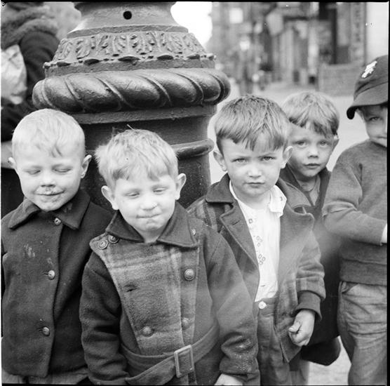 Little Boys Leaning against Lamppost