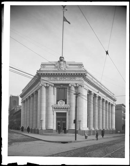 De Kalb Avenue and Fulton Street. Dime Savings Bank. General exterior.
