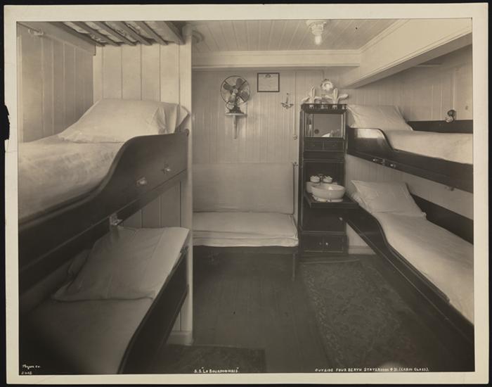 French Line, S.S. "De La Salle", Third Class, Interior, Four Berth Stateroom.