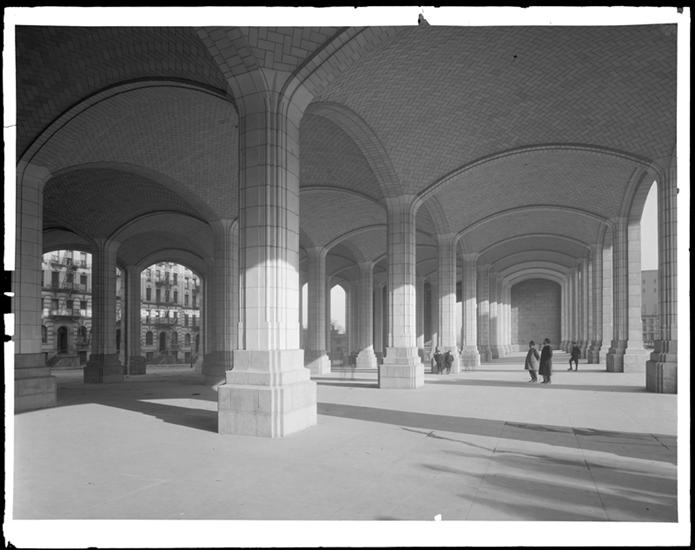 [Vaulted space under the Manhattan approach to the Queensboro Bridge.]