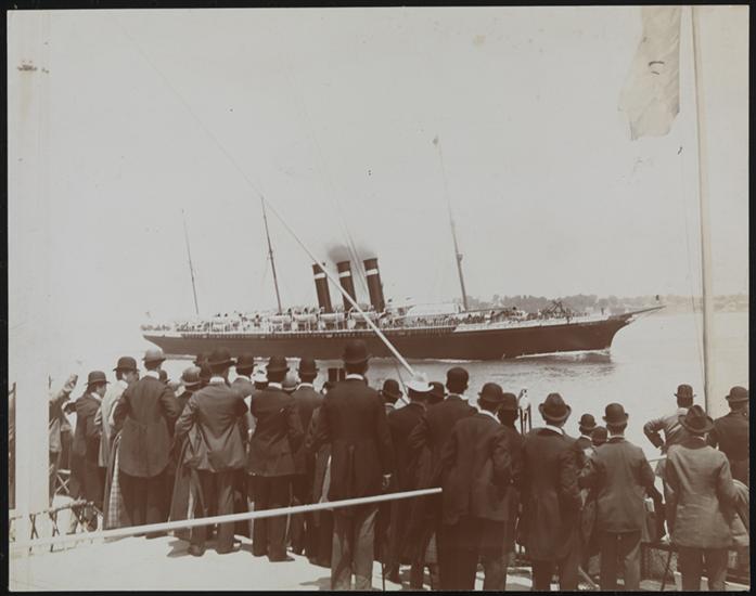 American Line, S.S. "Paris" Being Seen Off by Cornell College Boys on Excursion Boat at Wm. C. Egert.