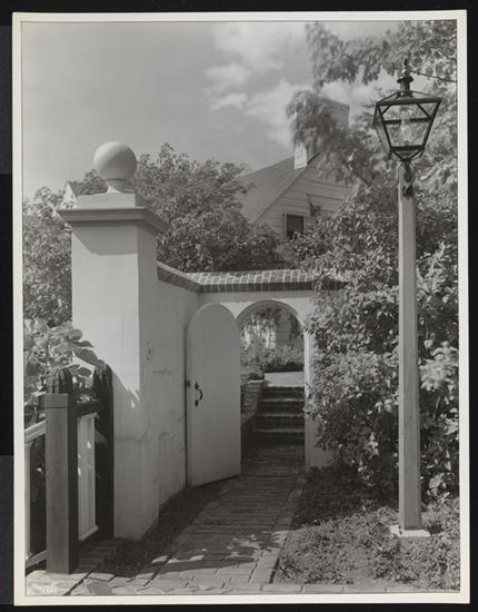 Rogers Estate, "Port of Missing Men," Southampton, L.I., Exterior, Gateway and Steps Leading to Garden.