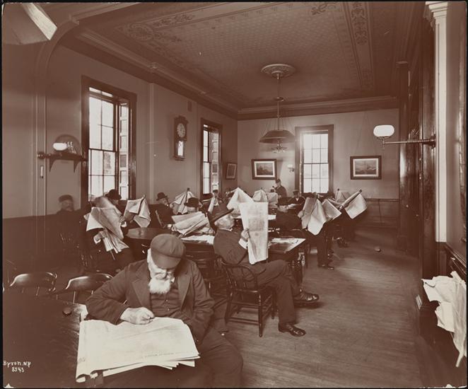 Men in a room at Sailor's Snug Harbor, a facility and home for retired sailors on Staten Island, New York.