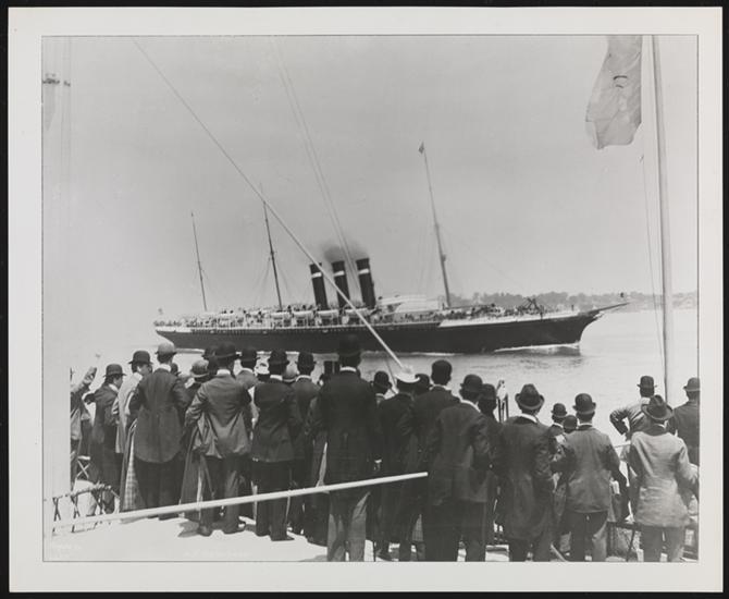 American Line, S.S. "Paris" Being Seen Off by Cornell College Boys on Excursion Boat at Wm. C. Egert.
