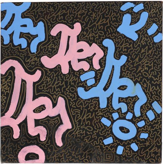 [INSIDE FRONT COVER AND FIRST PAGE OF KEITH HARING'S BOOK.]