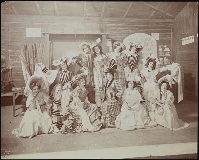 A scene from the production of "The Squaw Man's Girl of the Golden West" featuring Marie Dressler, Edward J. Connelly and Joe Weber and presented at Joe Weber's Music Hall in 1906.