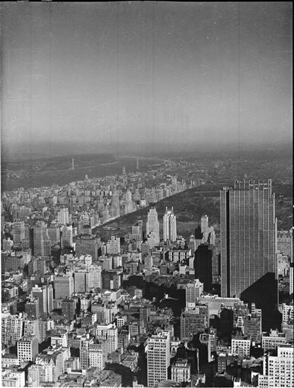 [Looking southeast over the Hudson River toward Upper Manhattan from the base of the New Jersey Palisades.]