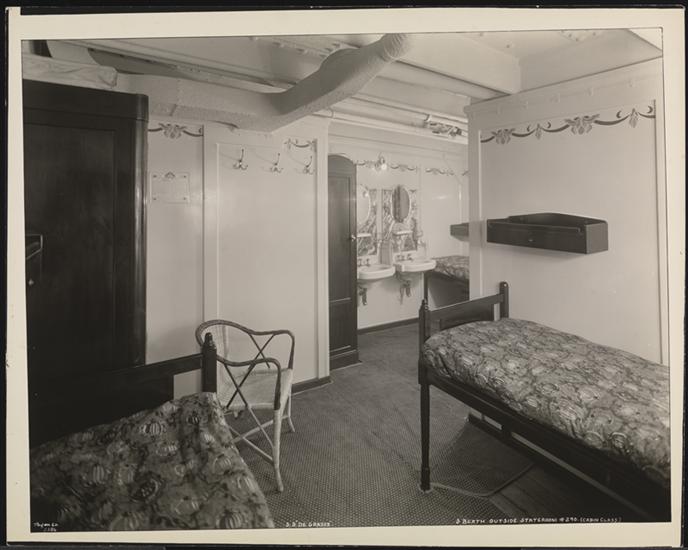 French Line, S.S. "Paris" Pier 88 N.R., Third Class, Interior, Outside 2 Berth Cabin #831.