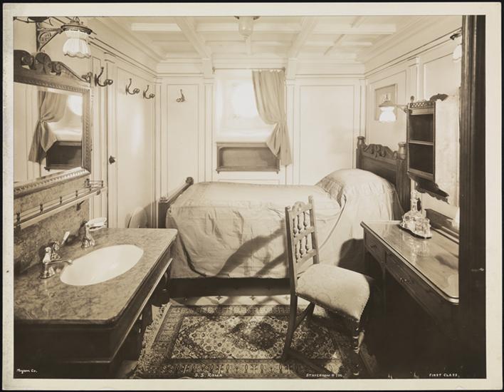 Italia-America Shipping Corp., S.S. "Roma", Pier 97 North River, First Class, Interior, Stateroom de Luxe #28.
