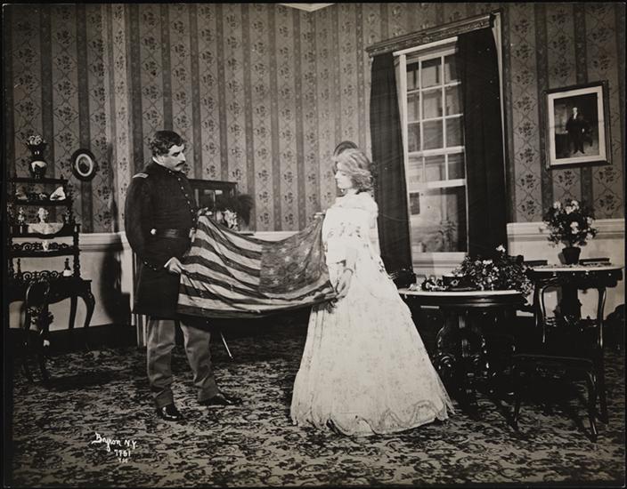 A scene from the romantic drama by Cylde Fitch, "Barbara Frietchie," produced by Charles Frohman at the Criterion Theatre, New York, in 1899, featuring Julia Marlowe as Barbara Frietchie.