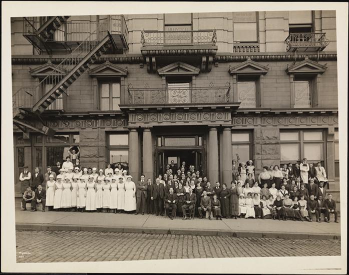 The employees of the Crystal Chemical Co. (located at 134th Street & Willis Avenue), standing for a group portrait outside of the main office and laboratories.