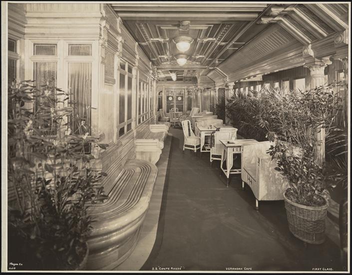 Lloyd Sabaudo Line, S.S. "Conte Rosso", Col Serrati, Interior, Veranda Cafe.