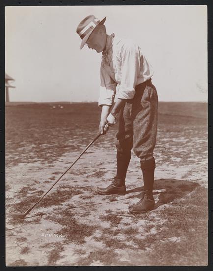 Description R. Page Kerr posed with a golf club at the Shinnecock Hills Golf Club.