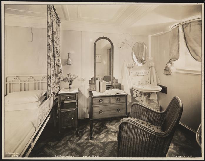 Hamburg American Line--North German Lloyd, S.S. "Columbus" Pier 88 N.R., Interior, Tourist Class, Outside 2 Berth Cabin #506.