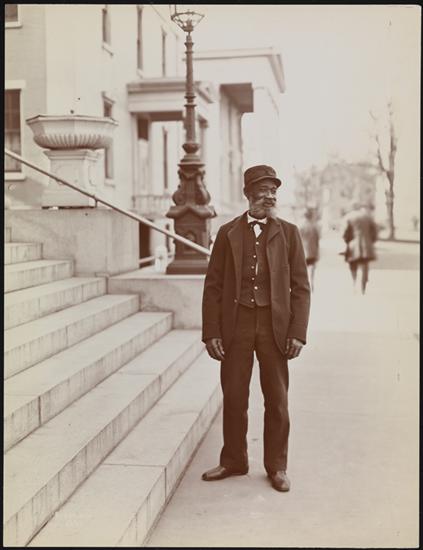 A retired African American sailor in uniform at Sailor's Snug Harbor, a facility and home for retired sailors on Staten Island, New York.