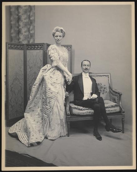 Portrait of an unidentified man and woman at the James Hazen Hyde Ball, January 31, 1905.