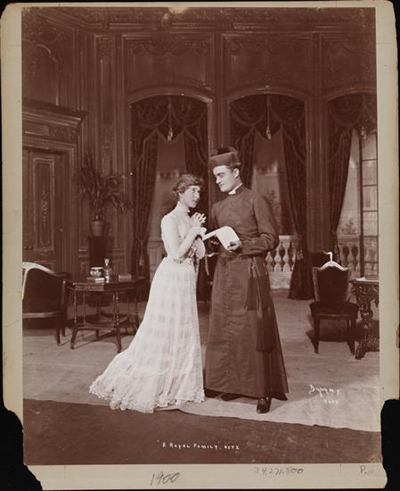 A scene from R. Marshall's comedy "A Royal Family" presented by Charles Frohman at the Lyceum Theatre in 1900, featuring Annie Russell as the Princess Alestine Victorine Angela.