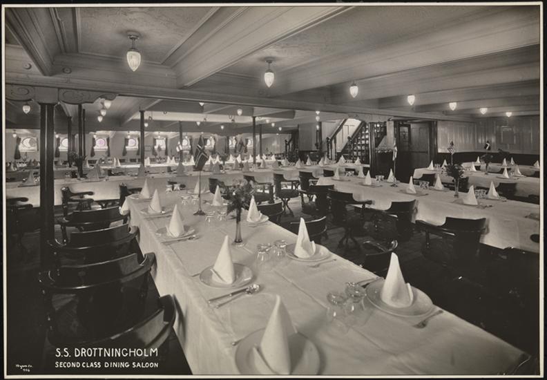 Swedish American Line, S.S. "Drottningholm", Third Class, Interior, Dining Room.