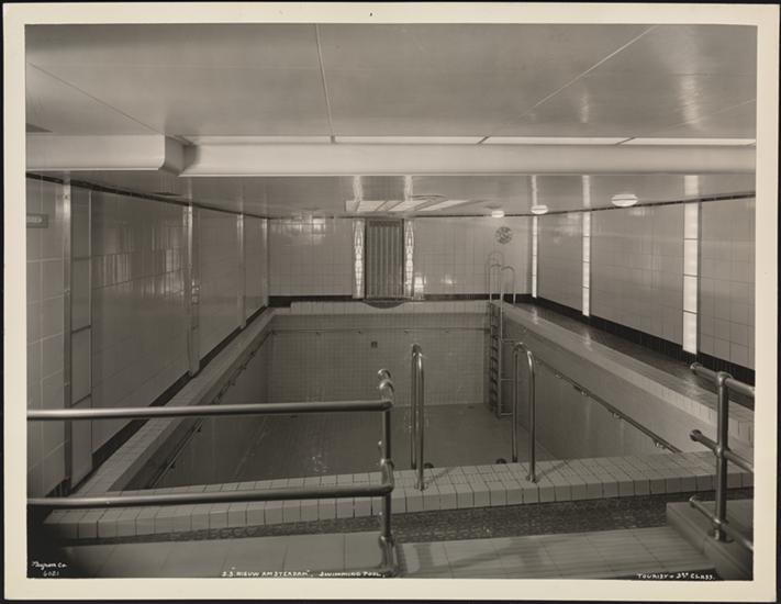 S.S. "Nieuw Amsterdam", 5th Street, Hoboken, N.J., Tourist & 3rd Cl., Swimming Pool Dressing Rooms.