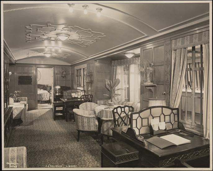Lloyd Sabaudo Line, S.S. "Conte Rosso", Col Serrati, Interior, the Library.