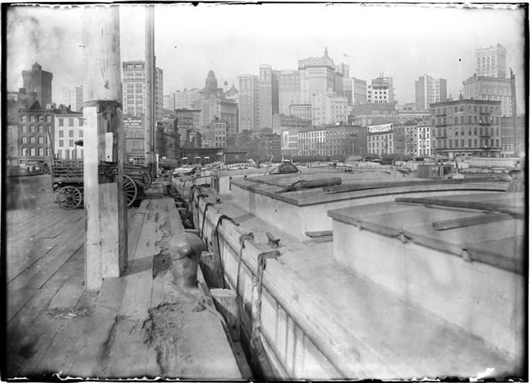 [Unidentified street scene, row of clapboard buildings with businesses on the ground floor]