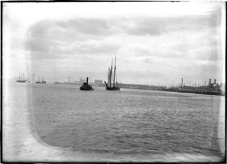 New York Harbor [bird's-eye view looking north toward lower Manhattan, with ships, ferries, and sailboats]