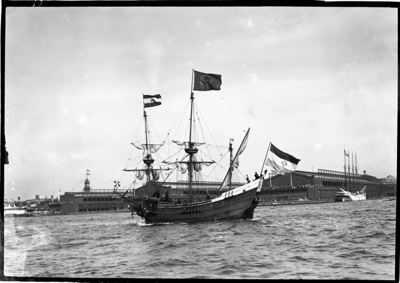 "Half Moon" [replica sailing in New York harbor], Henrick Hudson 300th Anniversary