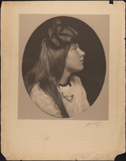 [Profile of unidentifed girl in white dress and necklace]