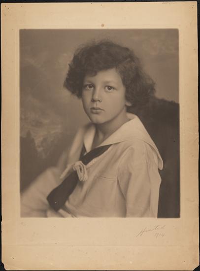 [Unidentified boy in sailor suit, head in hand]