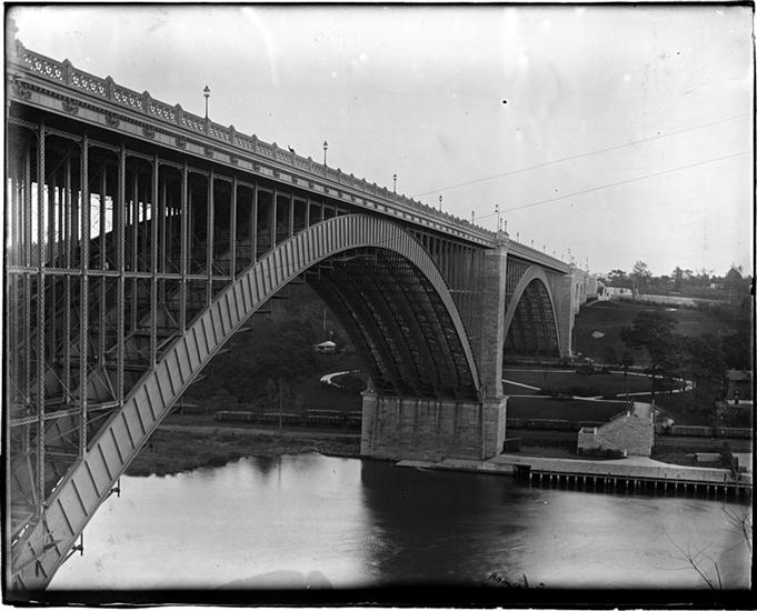 Brooklyn Bridge [showing the tracks and pedestrians on the walkway]