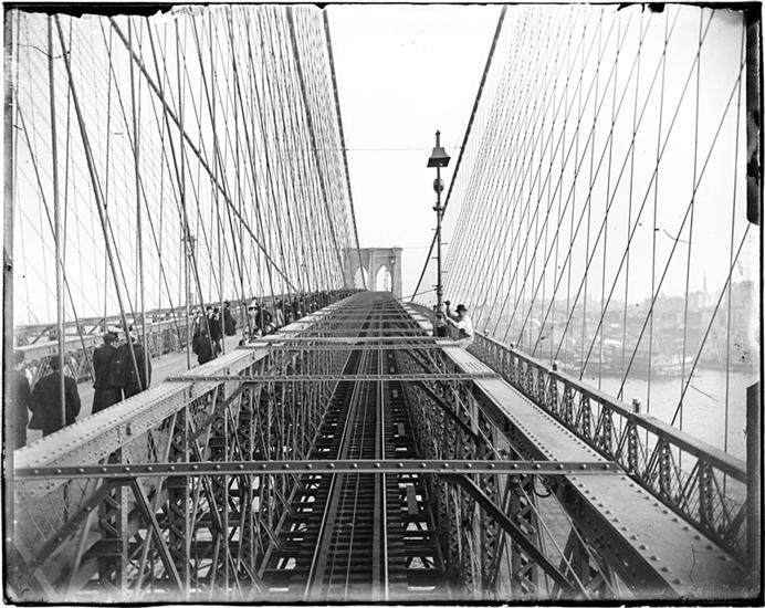 Untitled [The pedestrian walkway on the Brooklyn Bridge.]