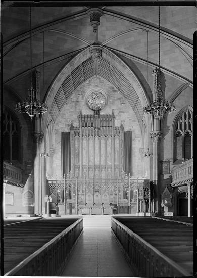East 12th Street and Fifth Avenue. First Presbyterian Church. Interior, view of chancel screen