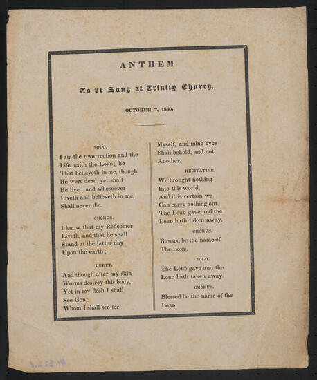 Order of Music, at the service connected with the Consecration of Trinity Church, New-York