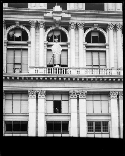 INSTALLATION OF CLOCK AT TIFFANY AND COMPANY BUILDING.